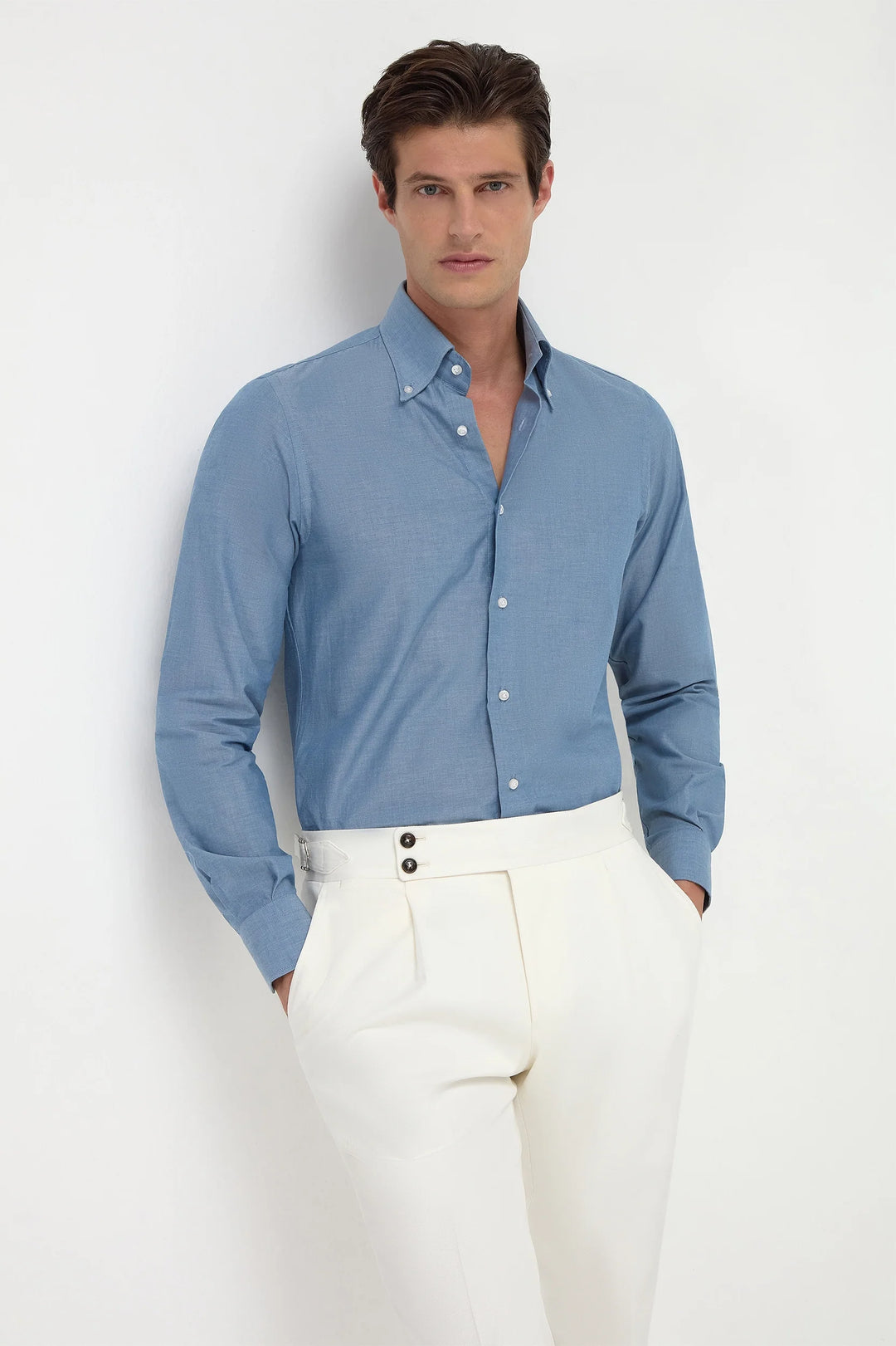 Blue chambray button down shirt - Made in Italy