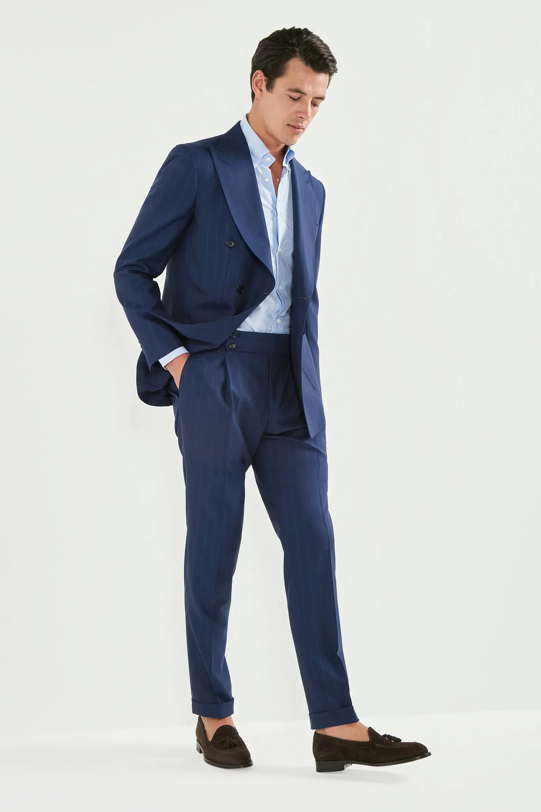 Blue double breasted striped suit - Made in Italy