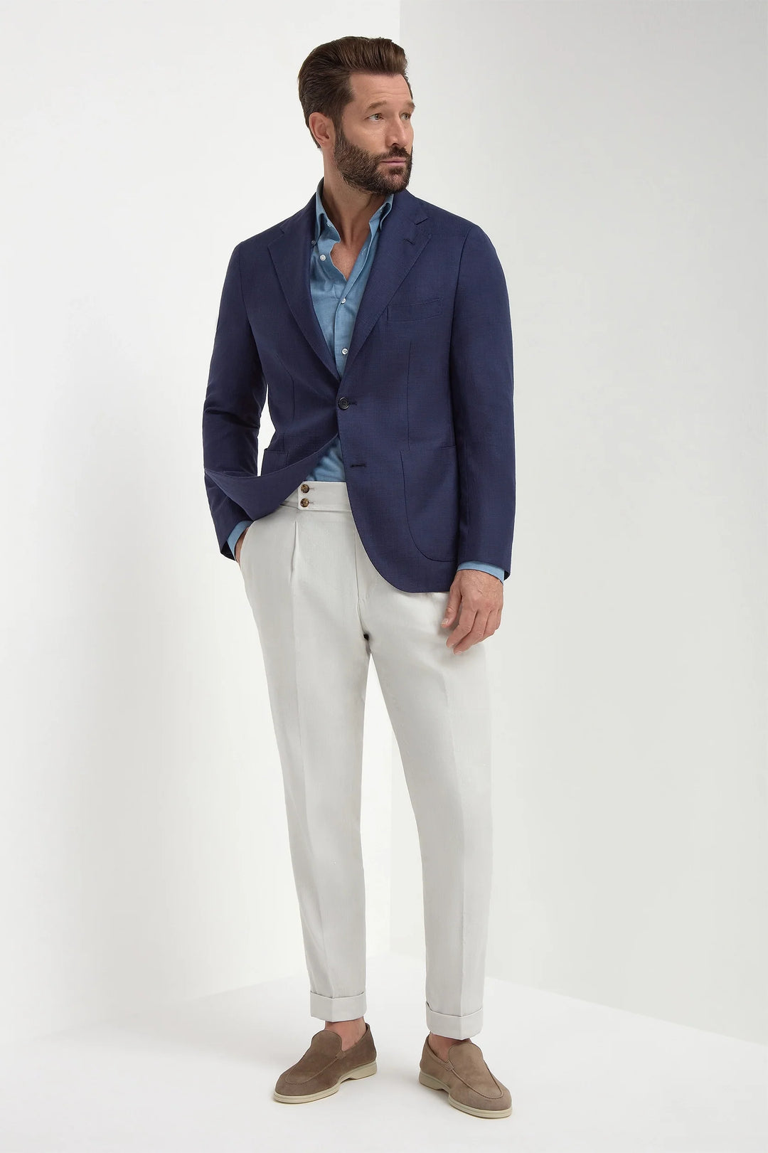 Blue jacket in cotton and silk - Made in Italy